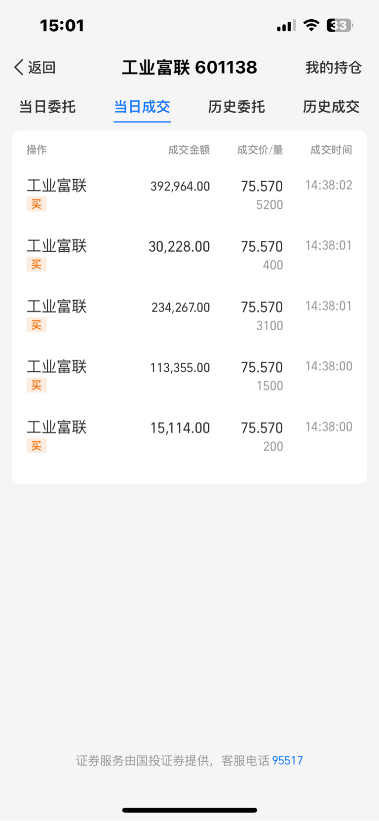 $工业富联(SH601138)$ 75.57挂在上真凉快,有没有比我高的?希望明天能解套。100亿成交量就是割我们这种韭菜的