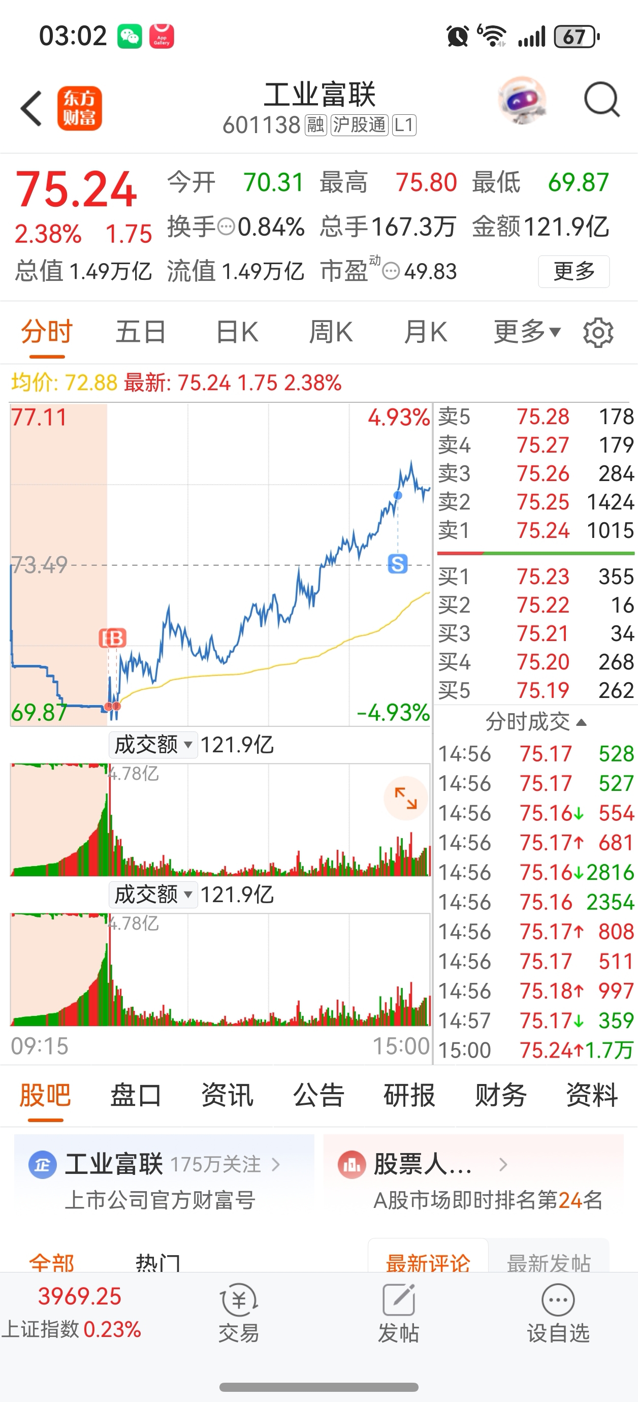 $工业富联(SH601138)$ 看看明天能不能再次拿到70左右的筹码