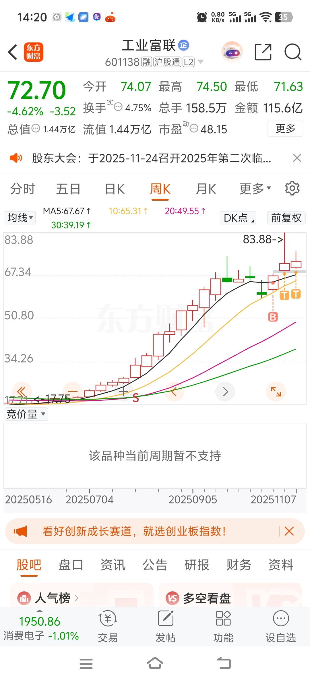 $工业富联(SH601138)$ 为啥这么多人骂,我寻思着也没跌多少啊,这周总体红了0.8%,做点t也还有好几个点了。不追高不就行了,我68追进来的都赚了不少