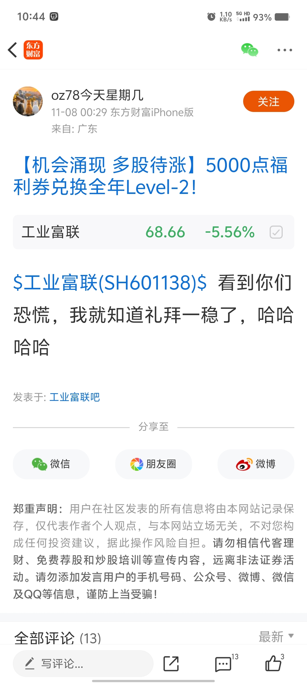 温馨提示: 1.根据《证券法》规定,禁止编造、传播虚假信息或者误导性信息,扰乱证券市场;2.用户在本社区发表的所有资料、言论等仅代表个人观点,与本网站立场无关,不对您构成任何投资建议。用户应基于自己的独立判断,自行决定证券投资并承担相应风险。《东方财富社区管理规定》
