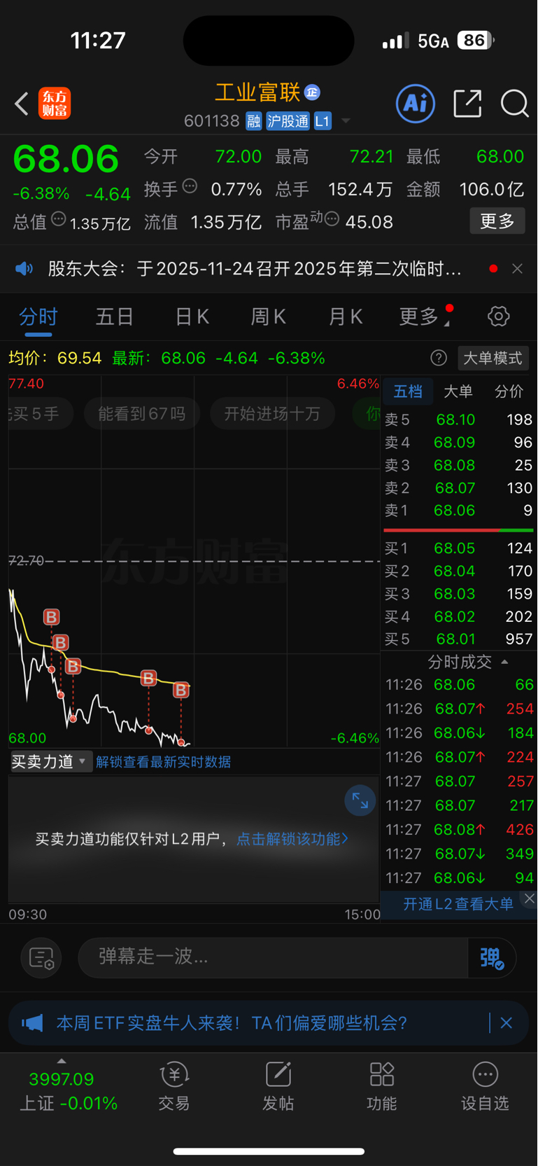 $工业富联(SH601138)$ 稳步下跌,一点反弹都没有