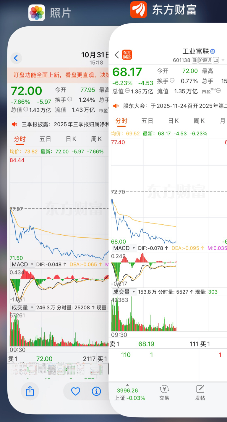 $工业富联(SH601138)$ 机构调仓,神仙来了也没办法,看看盘后会不会有监管对机构的指导意见。走势和10.31那天相似,那天明盘主力流出31亿,看看今天会不会更多