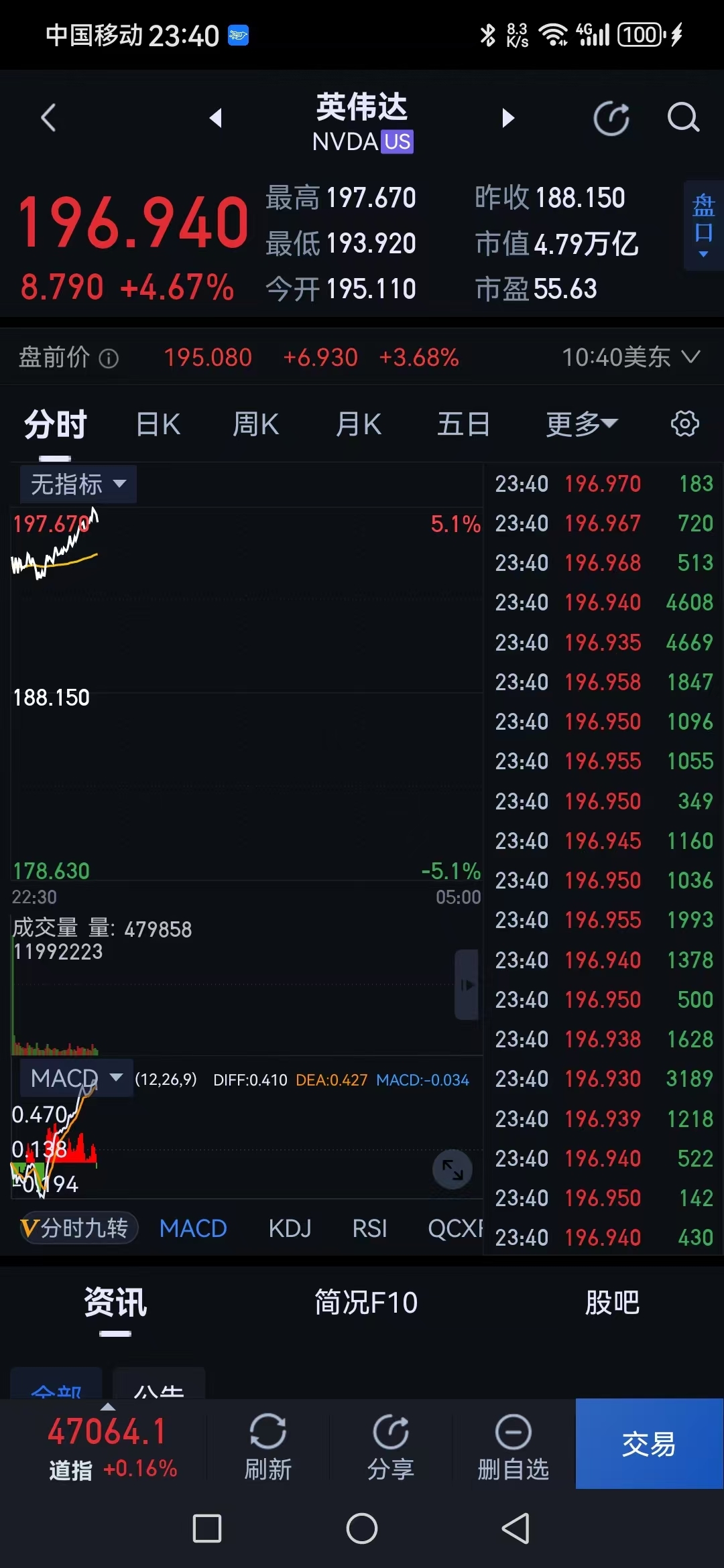 英伟达大涨5个点,涨疯了今天周一没抄底,69.7,480)吃工业富联中鸡旭创胜宏