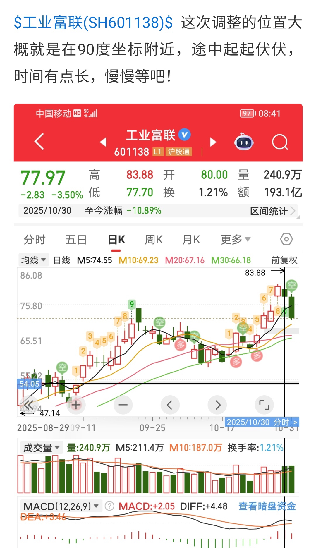 $工业富联(SH601138)$ 之前说的观点不变,时间会慢慢证明一切的,等待结果。