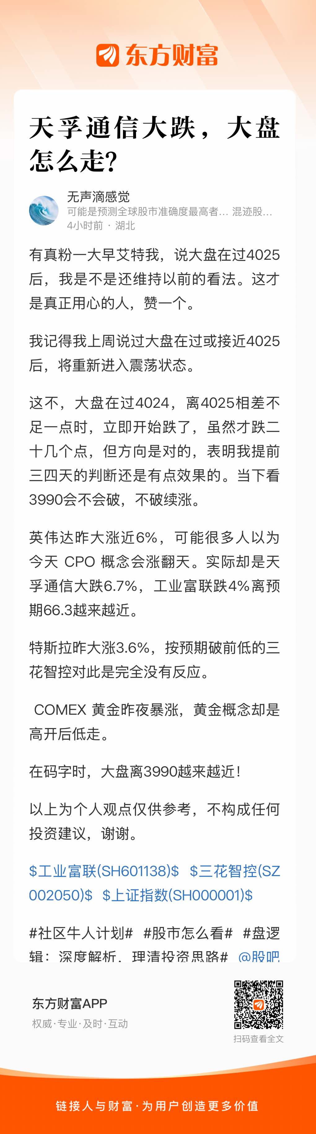 有真粉一大早艾特我,说大盘在过4025后,我是不是还维持以前的看法。这才是真正用心的人,赞一个。