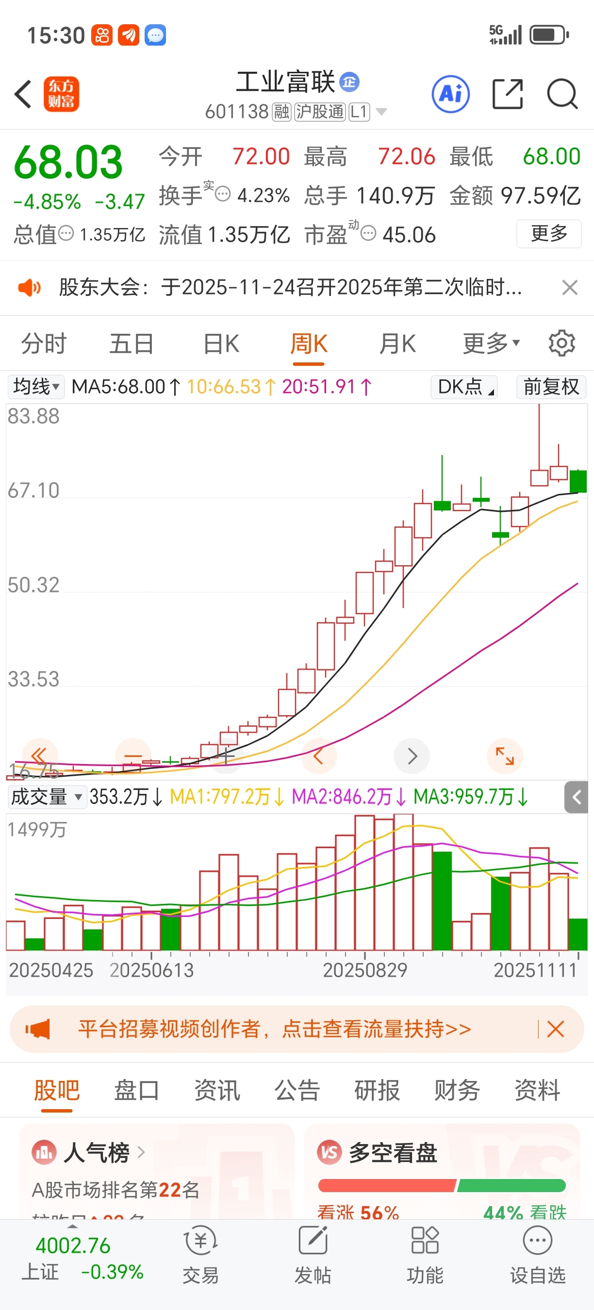 $工业富联(SH601138)$ 它是真爱回踩五日线,看的我都想笑,准备设置一条条件单88.85全仓出时间设置一个月。准备删软件忙事业去了。什么时候触发发消息了什么时候再买新股已经满仓抄底了也没资金再加了重仓全部进工业富联了#强势机会# #炒股日记# #收盘点评# #股市怎么看# #投资干货#