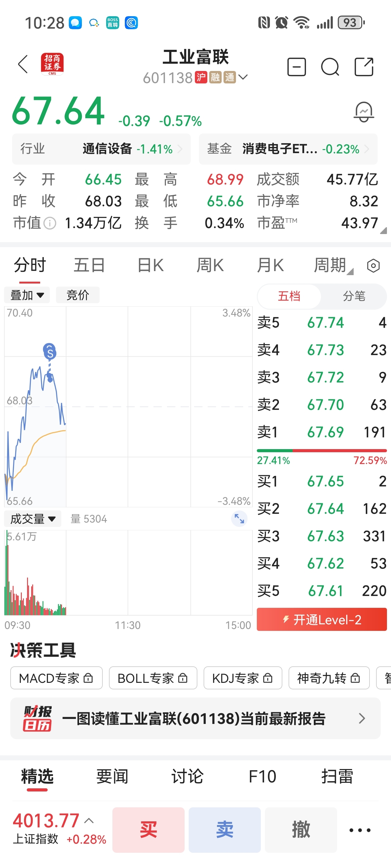 $工业富联(SH601138)$ 拿了快半个月了,整体还是亏的,认亏-5出局,本来是打平的,昨天走势太差了被严重拖累,及时止损。