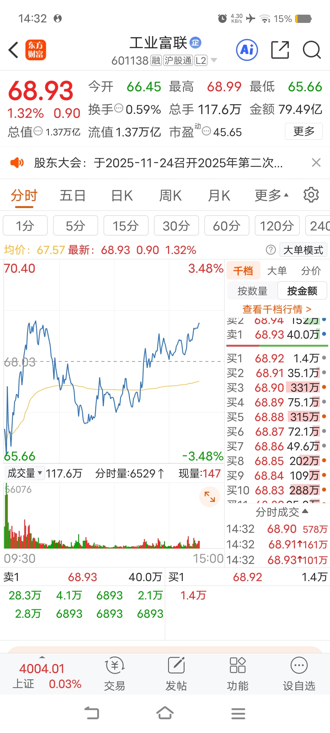 $工业富联(SH601138)$ 大量买入,马上涨停