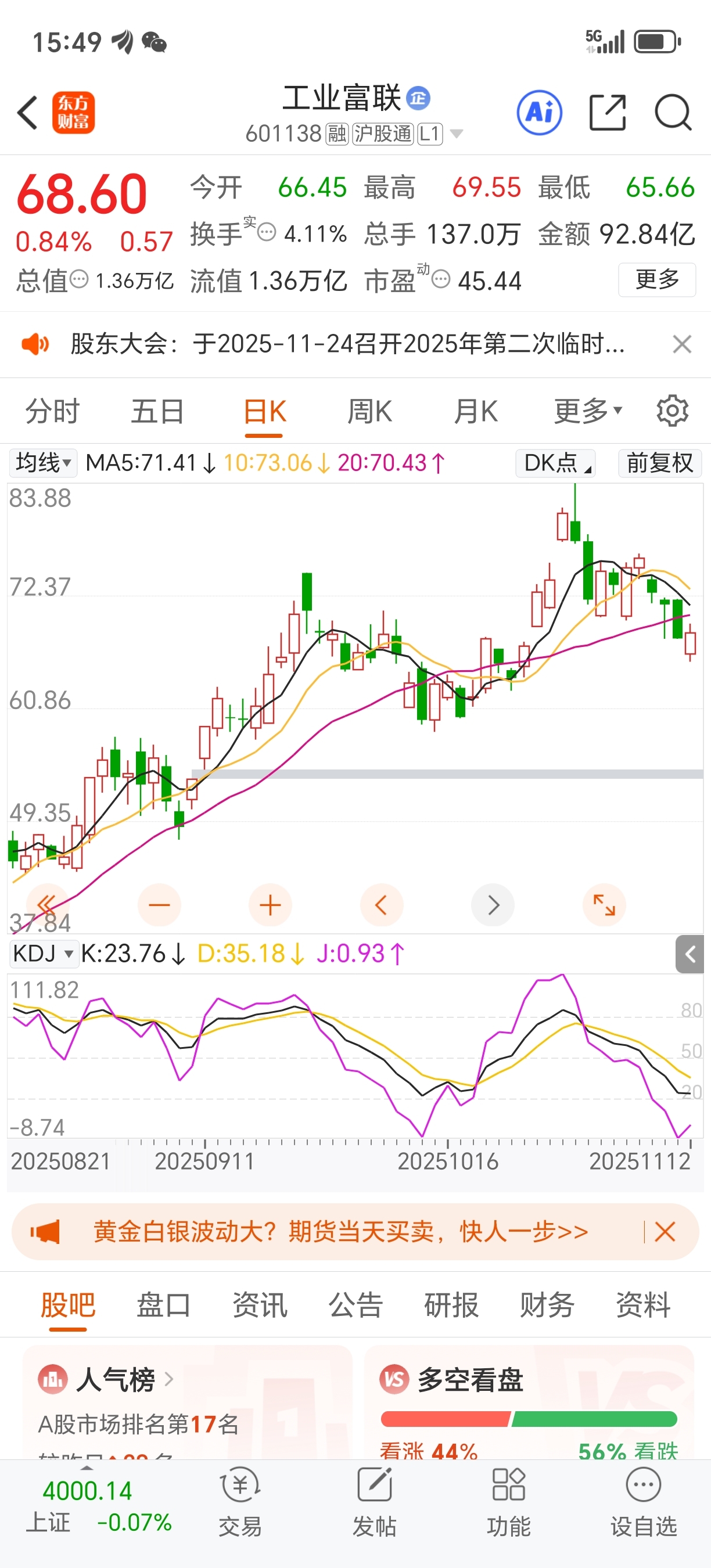 $工业富联(SH601138)$ 注意观察最迟最迟再洗7个交日易就要开始拉一波到92.3这个价格,我会一直满仓这里面高抛低吸一直高抛低吸等待