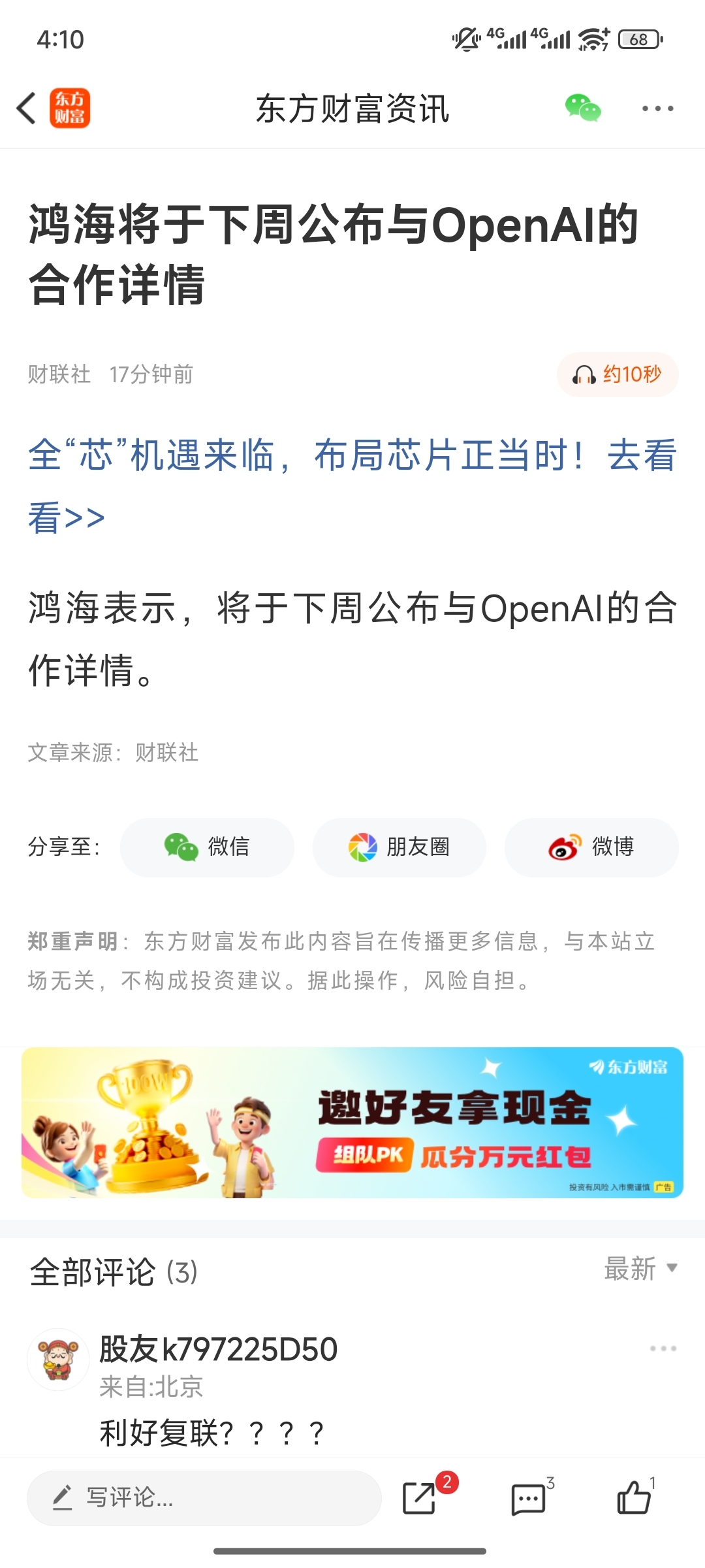 温馨提示: 1.根据《证券法》规定,禁止编造、传播虚假信息或者误导性信息,扰乱证券市场;2.用户在本社区发表的所有资料、言论等仅代表个人观点,与本网站立场无关,不对您构成任何投资建议。用户应基于自己的独立判断,自行决定证券投资并承担相应风险。《东方财富社区管理规定》