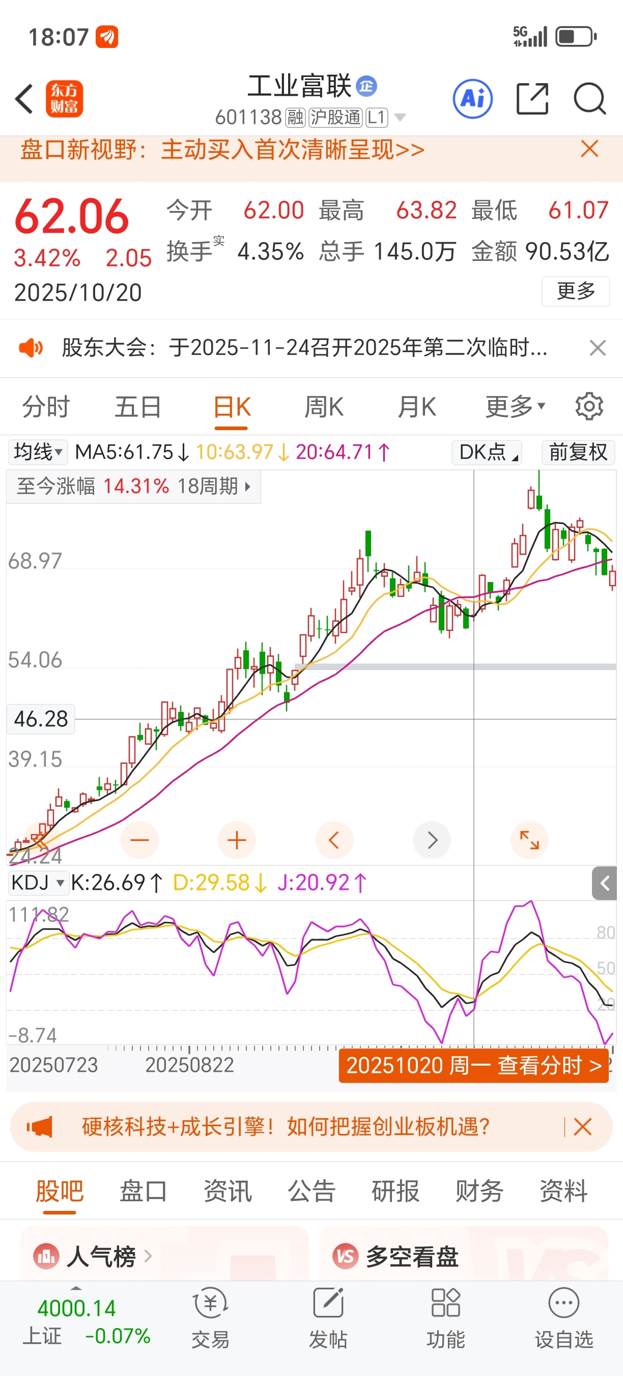 $工业富联(SH601138)$ 很明显这个位置是看明天直接拉涨停还是在这个位置震荡六个交易日再连续拉四天到93元附近这两种走势