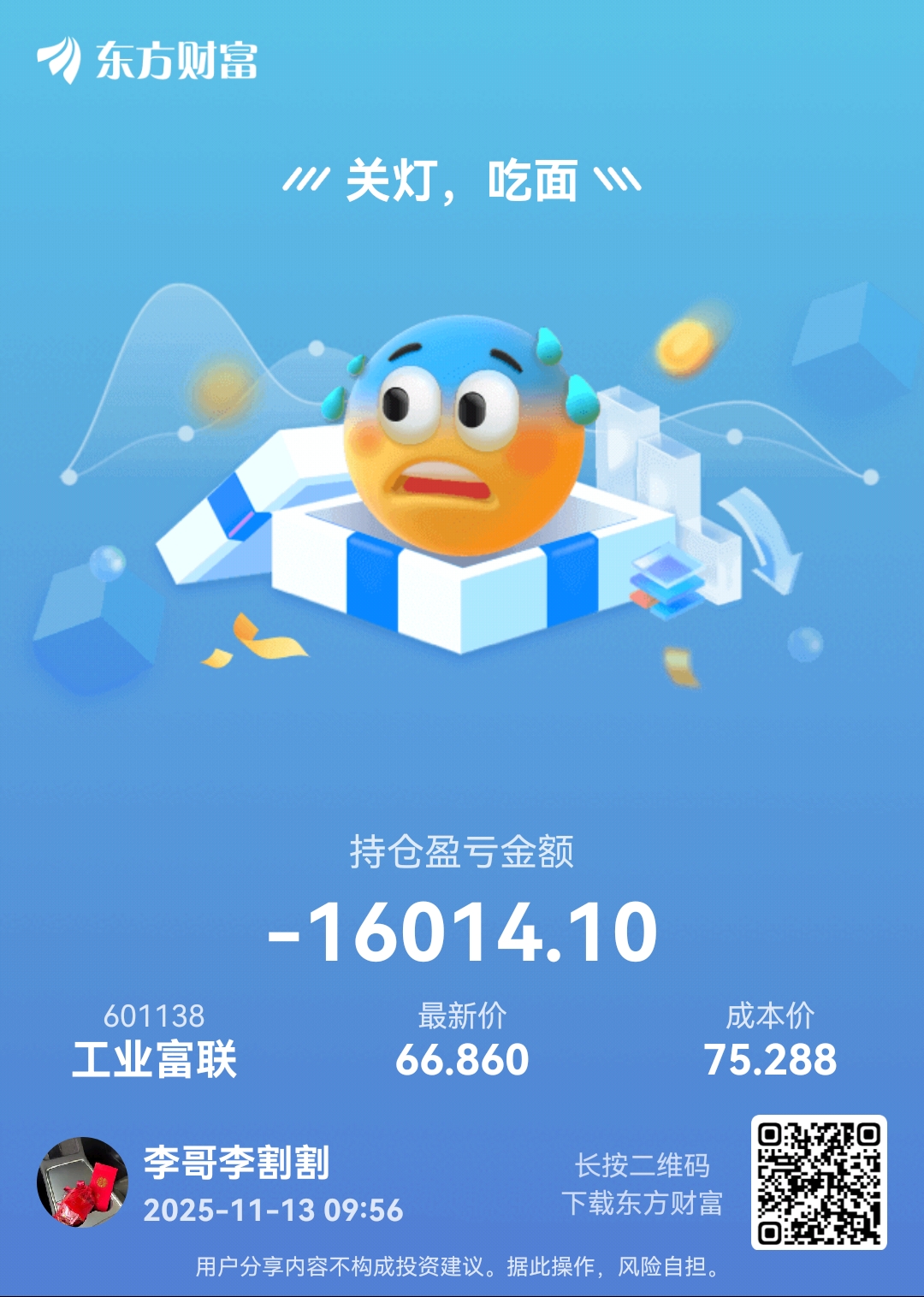 $工业富联(SH601138)$ 一周了。我还在。跌吧。奉劝各位别抄底。