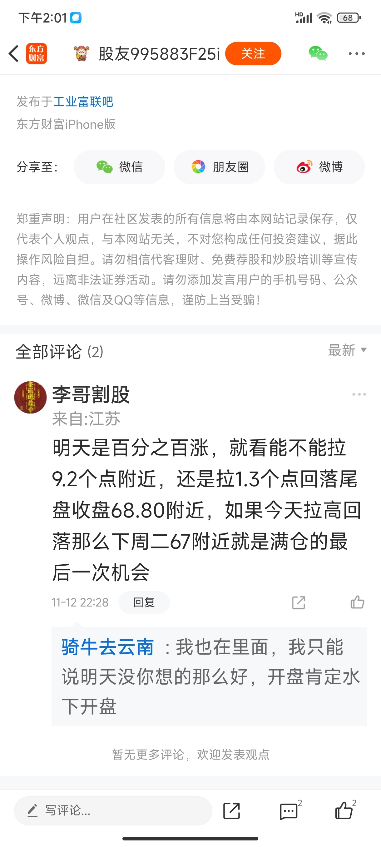 温馨提示: 1.根据《证券法》规定,禁止编造、传播虚假信息或者误导性信息,扰乱证券市场;2.用户在本社区发表的所有资料、言论等仅代表个人观点,与本网站立场无关,不对您构成任何投资建议。用户应基于自己的独立判断,自行决定证券投资并承担相应风险。《东方财富社区管理规定》