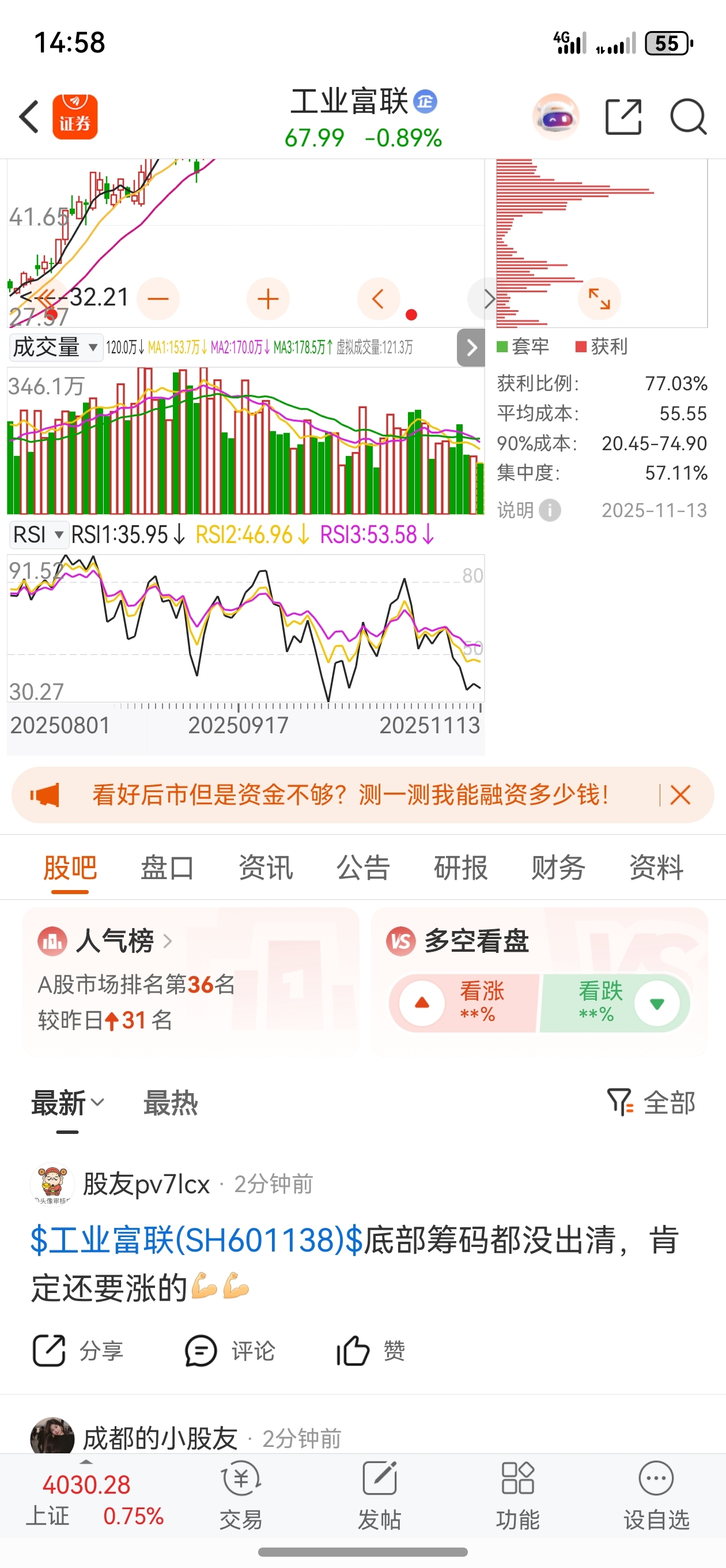 $工业富联(SH601138)$ RSI基本上到最底部,差不多会有一波反弹,置于是反弹还是反转,得看看了