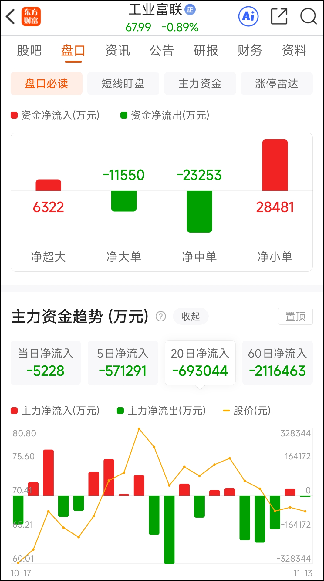 $工业富联(SH601138)$ 五千多万。。。嗯,这是主力没的可抛了吗?硅儿子,你倒是继续抛啊。。。