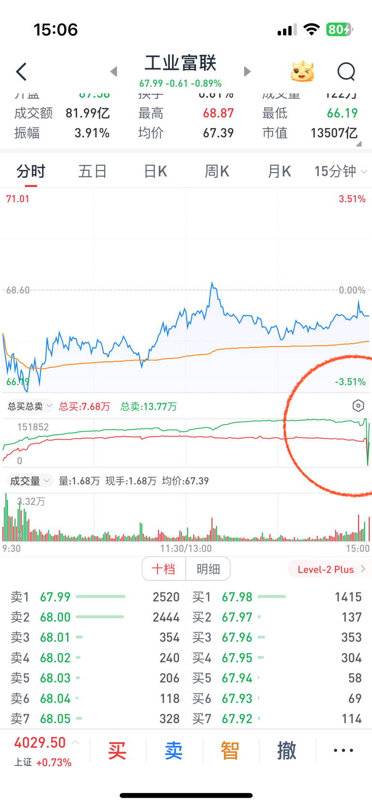 $工业富联(SH601138)$ 尾盘是不是有大单买入?我软件上显示卖单一下子少了