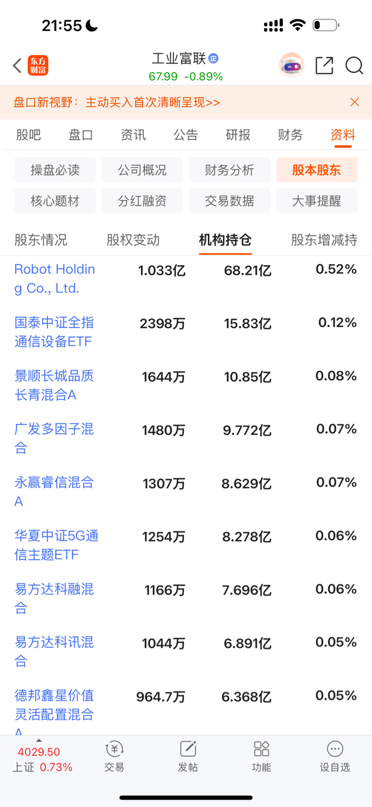 才发现富联的机构持仓这么寒酸,和真正的机构抱团股比,差距太大了。为什么规模最大的