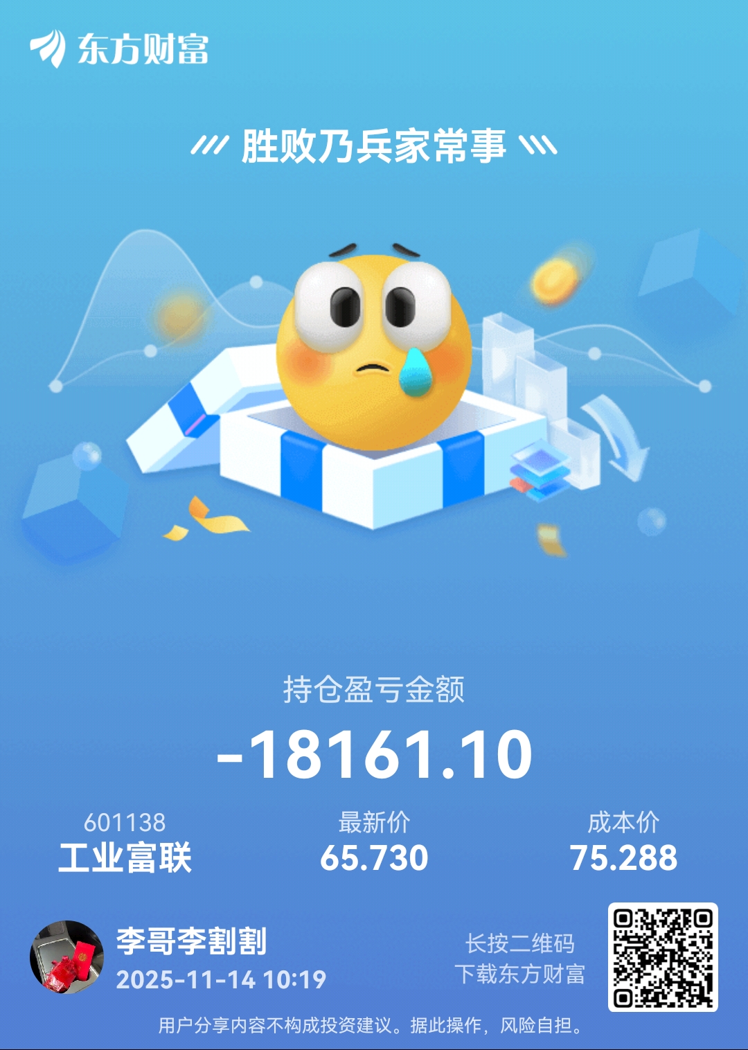 温馨提示: 1.根据《证券法》规定,禁止编造、传播虚假信息或者误导性信息,扰乱证券市场;2.用户在本社区发表的所有资料、言论等仅代表个人观点,与本网站立场无关,不对您构成任何投资建议。用户应基于自己的独立判断,自行决定证券投资并承担相应风险。《东方财富社区管理规定》