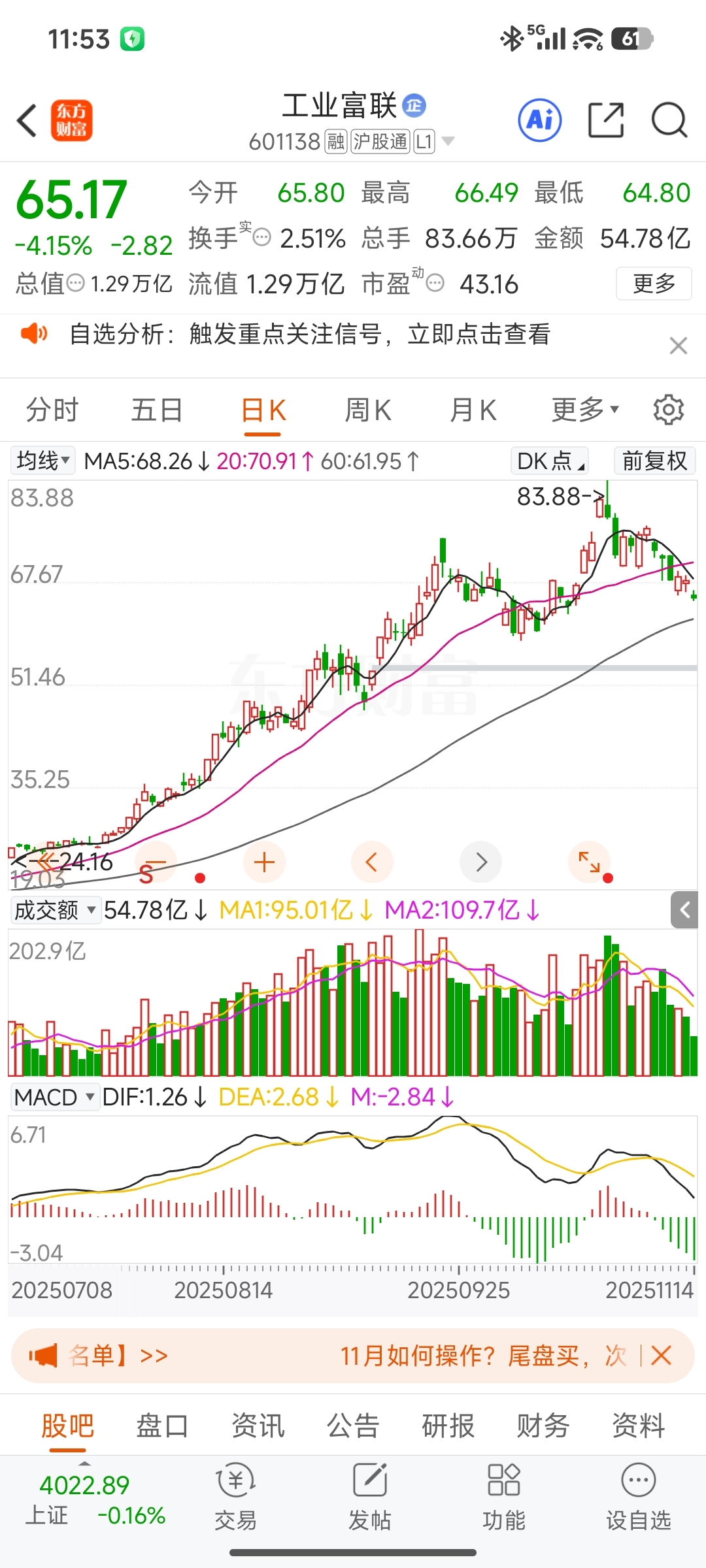 $工业富联(SH601138)$ 唯一支持60日线。。。然后继续向下补缺口。。。还有好几个爹哦,麻蛋。。。完球