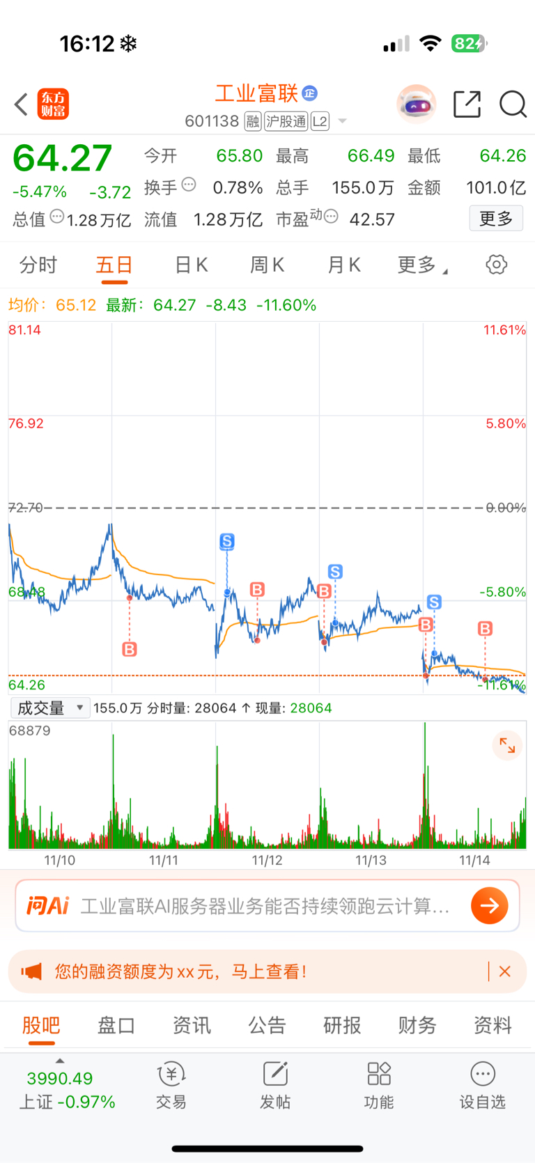 $工业富联(SH601138)$ 赚两千的现在倒亏两千