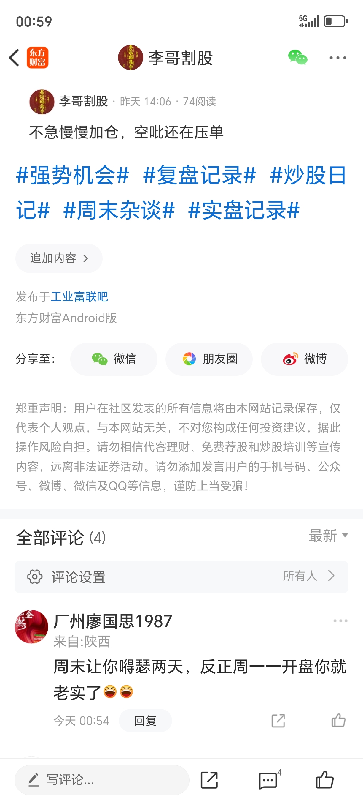 温馨提示: 1.根据《证券法》规定,禁止编造、传播虚假信息或者误导性信息,扰乱证券市场;2.用户在本社区发表的所有资料、言论等仅代表个人观点,与本网站立场无关,不对您构成任何投资建议。用户应基于自己的独立判断,自行决定证券投资并承担相应风险。《东方财富社区管理规定》