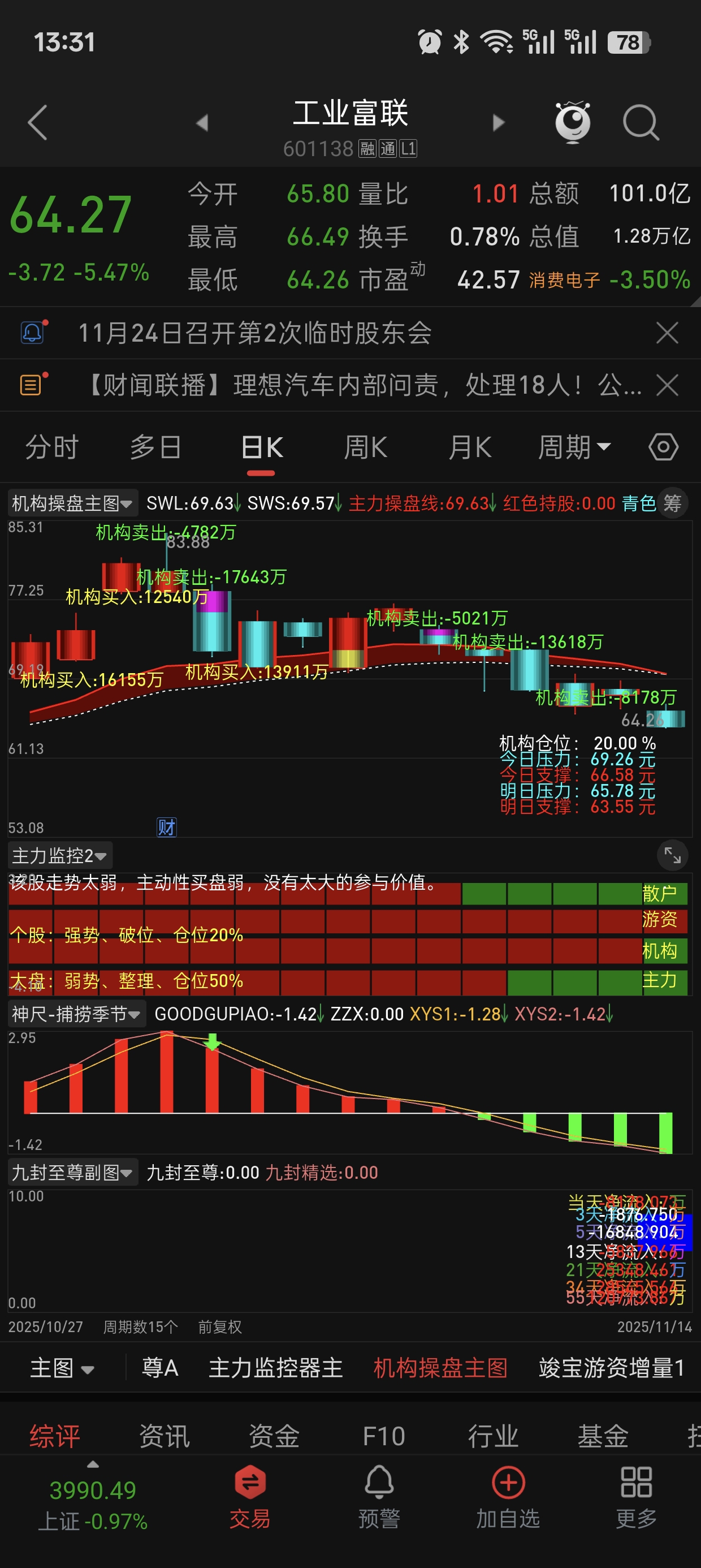 $工业富联(SH601138)$ 下行趋势