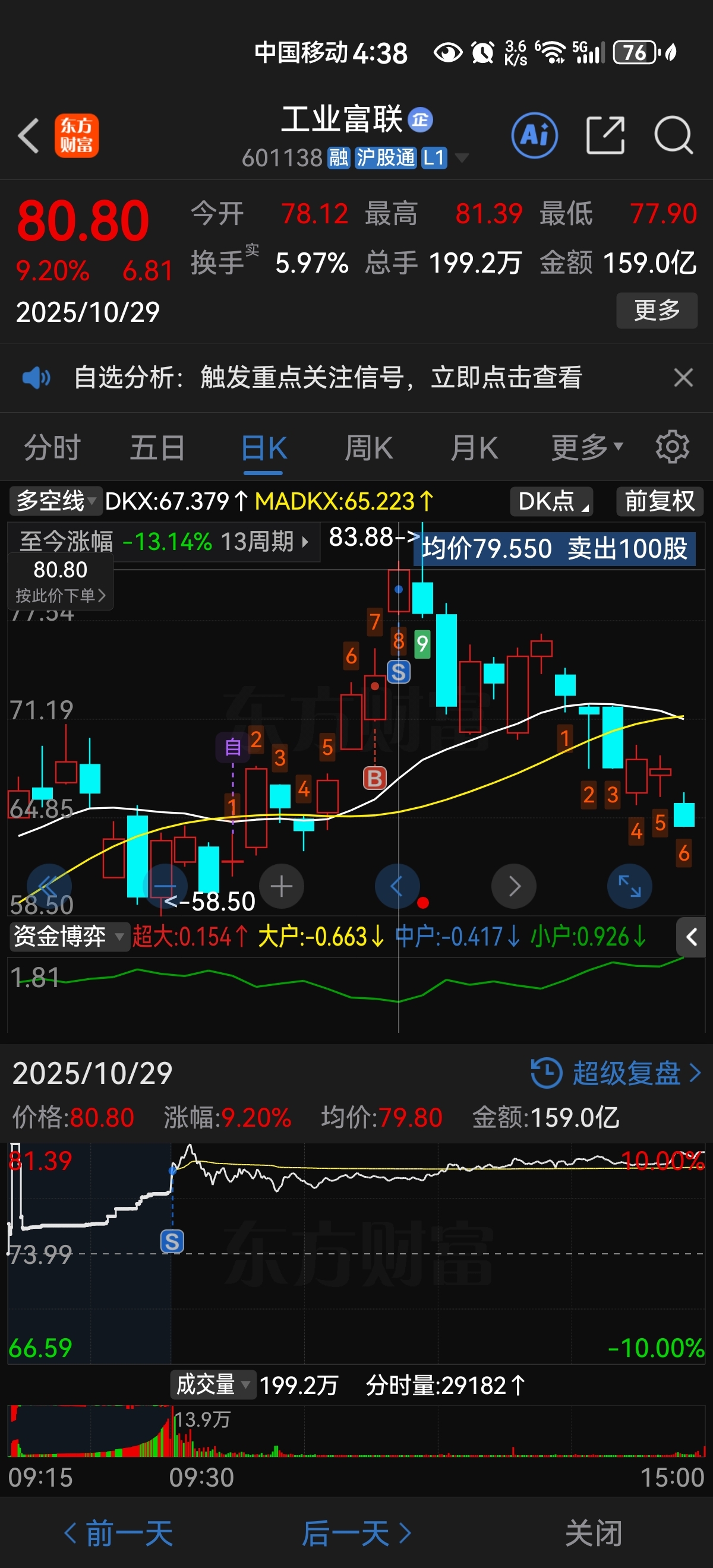 上次79。.55卖的明天要是高开我直接追进来低开狗都不看了,昨天把钱农业银行了