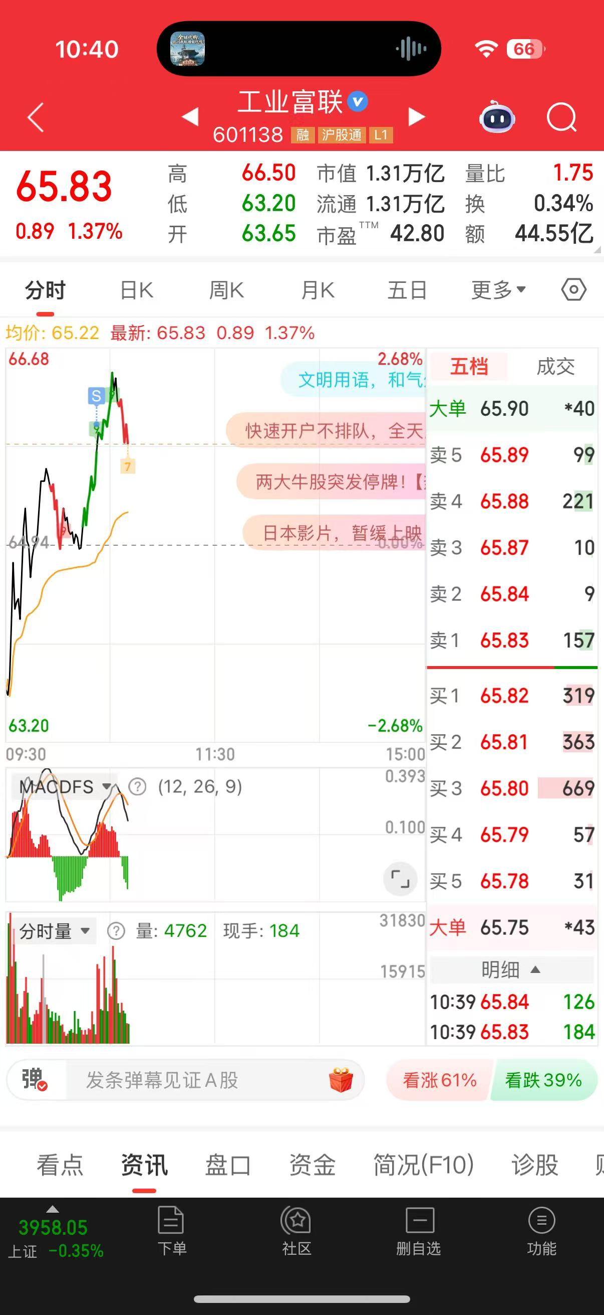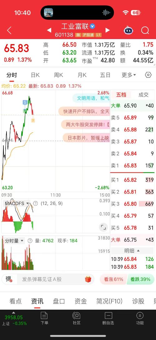 上周64.97进的,今天66跑了,昨天没做个大t,有点后悔,看看等会有没有机会接