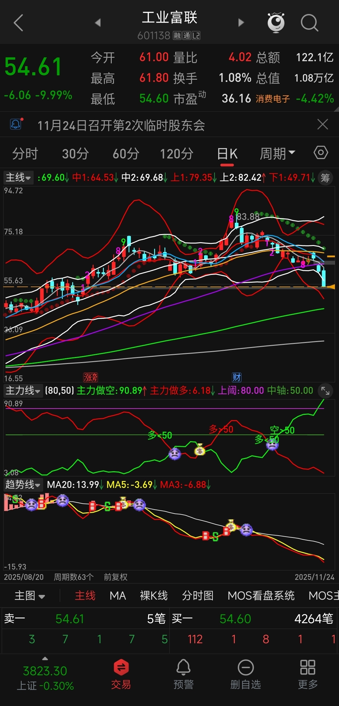 $工业富联(SH601138)$ 60分钟主力做空线这么强也敢抄底?
