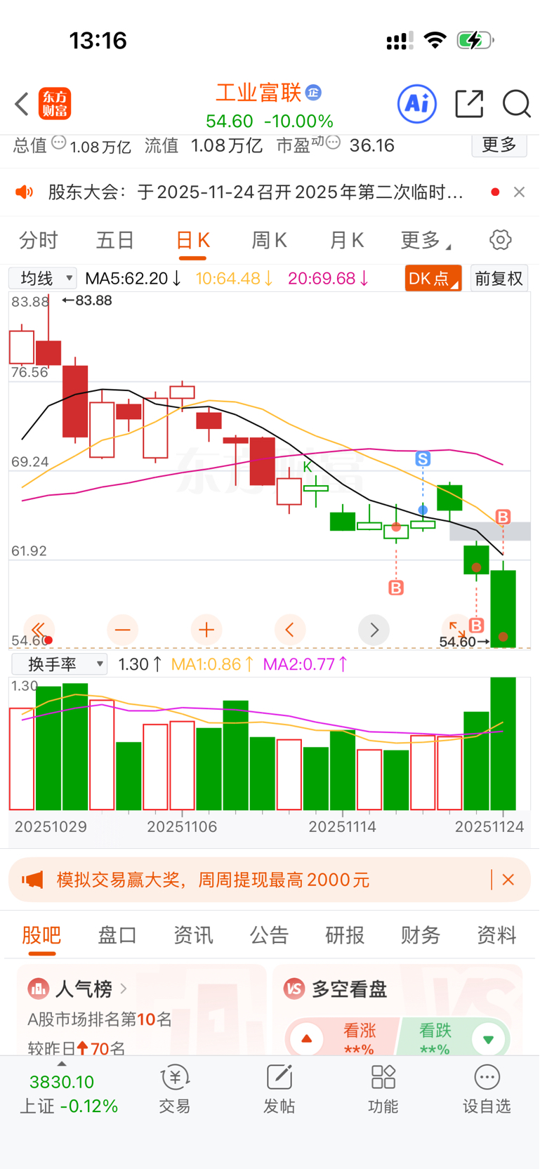 $工业富联(SH601138)$ 被我买崩了的吗?