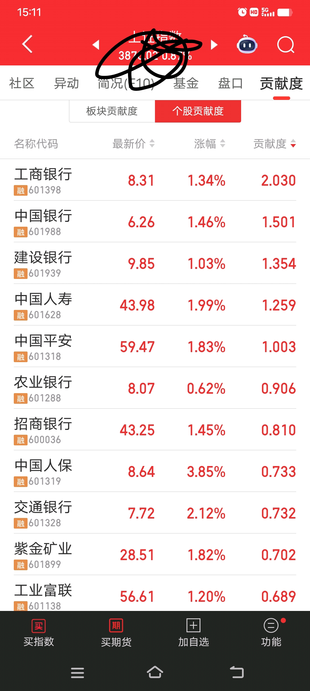 $工业富联(SH601138)$ 看这张图片就知道为啥富联今天不拉了,一方面,昨天大跌,今天不可能反包,岂不是抄底的人爽了,另外一个方面,看上证指数贡献度就明了