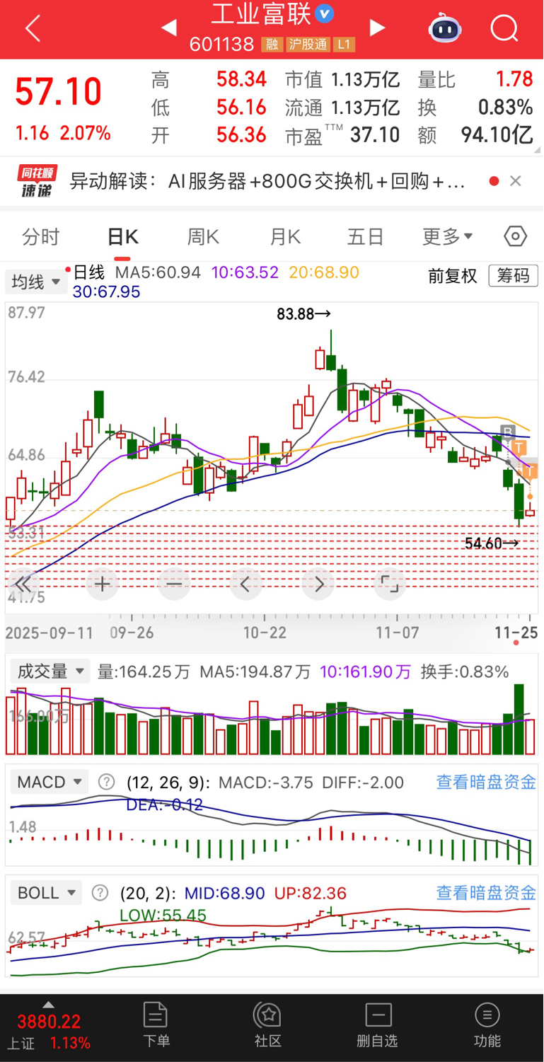 $工业富联(SH601138)$ 随便你跌了,条件单了