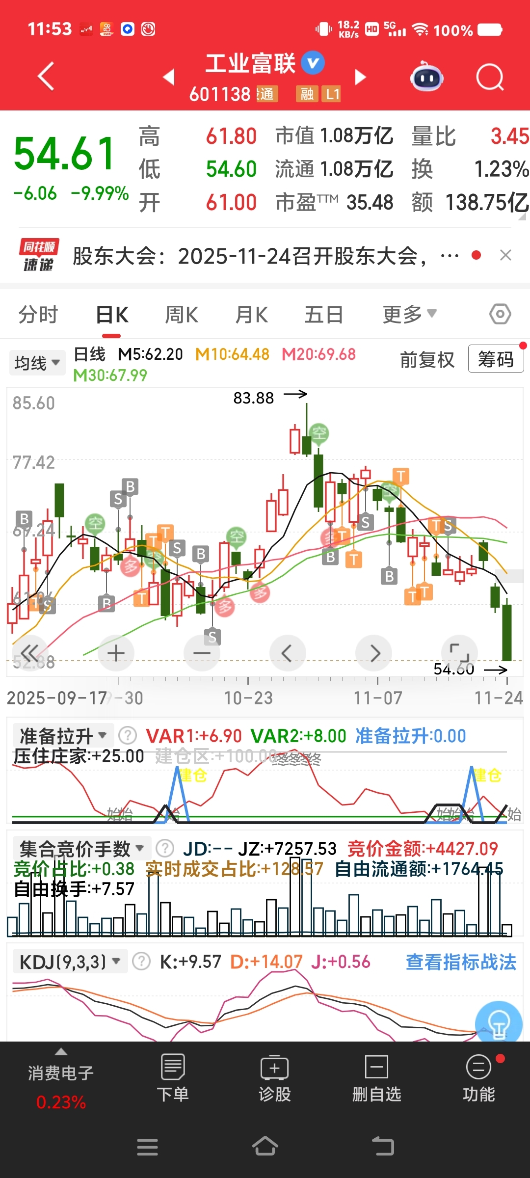$工业富联(SH601138)$ 跌吧!诱多已达目的!该追高的都进去了