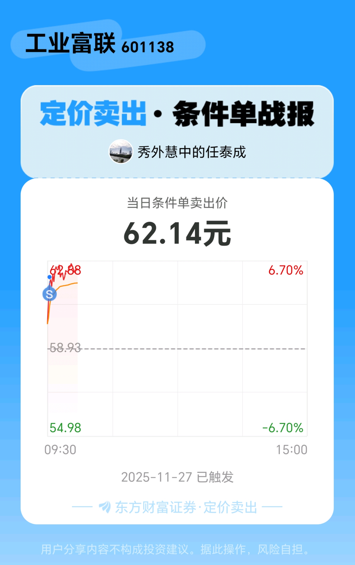 #条件单交流# #定价卖出晒单# 我方派出一个定价卖出条件单,立时就征服了$工业富联(SH601138)$