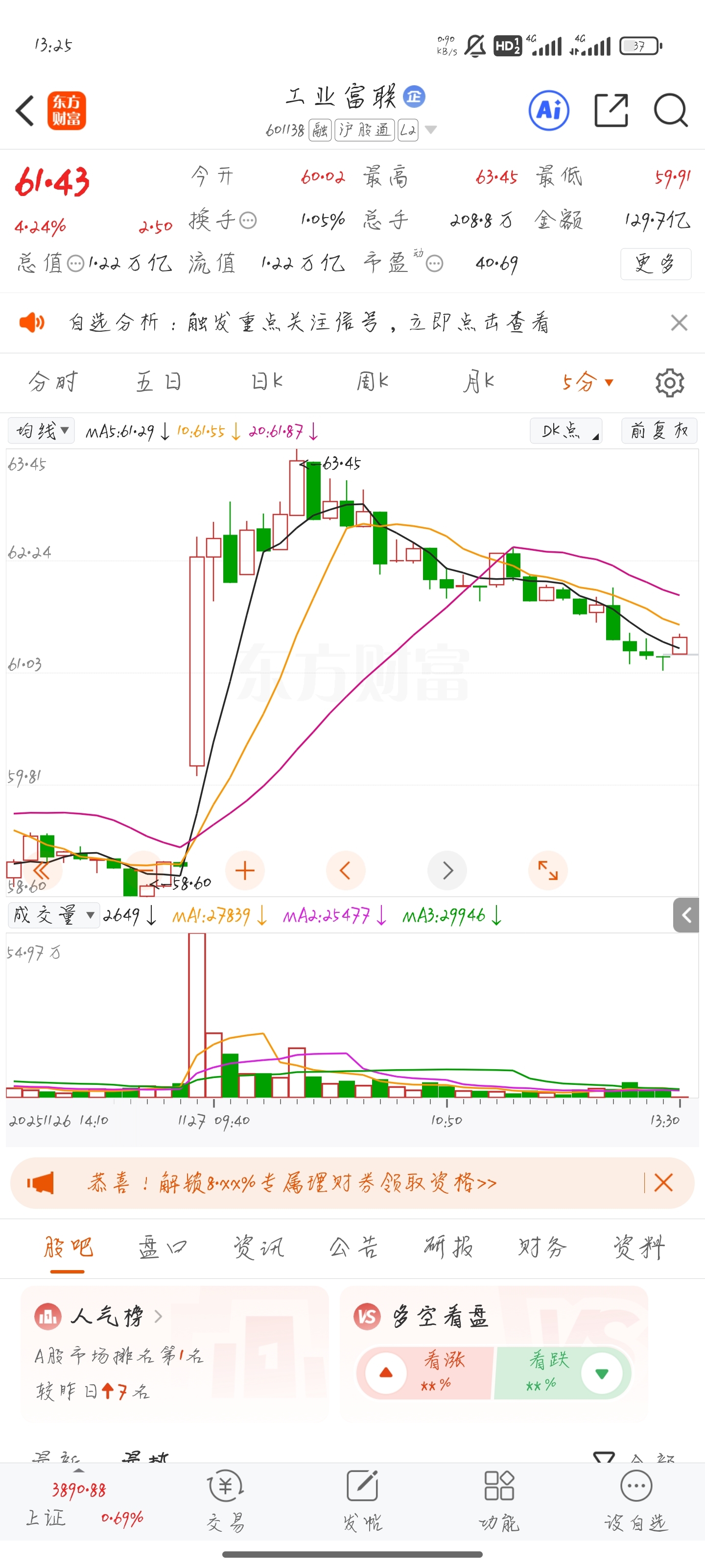 $工业富联(SH601138)$ 这么典型的急拉缓跌走势你们都看不出来,活该亏钱,明天直接低开1到2个点