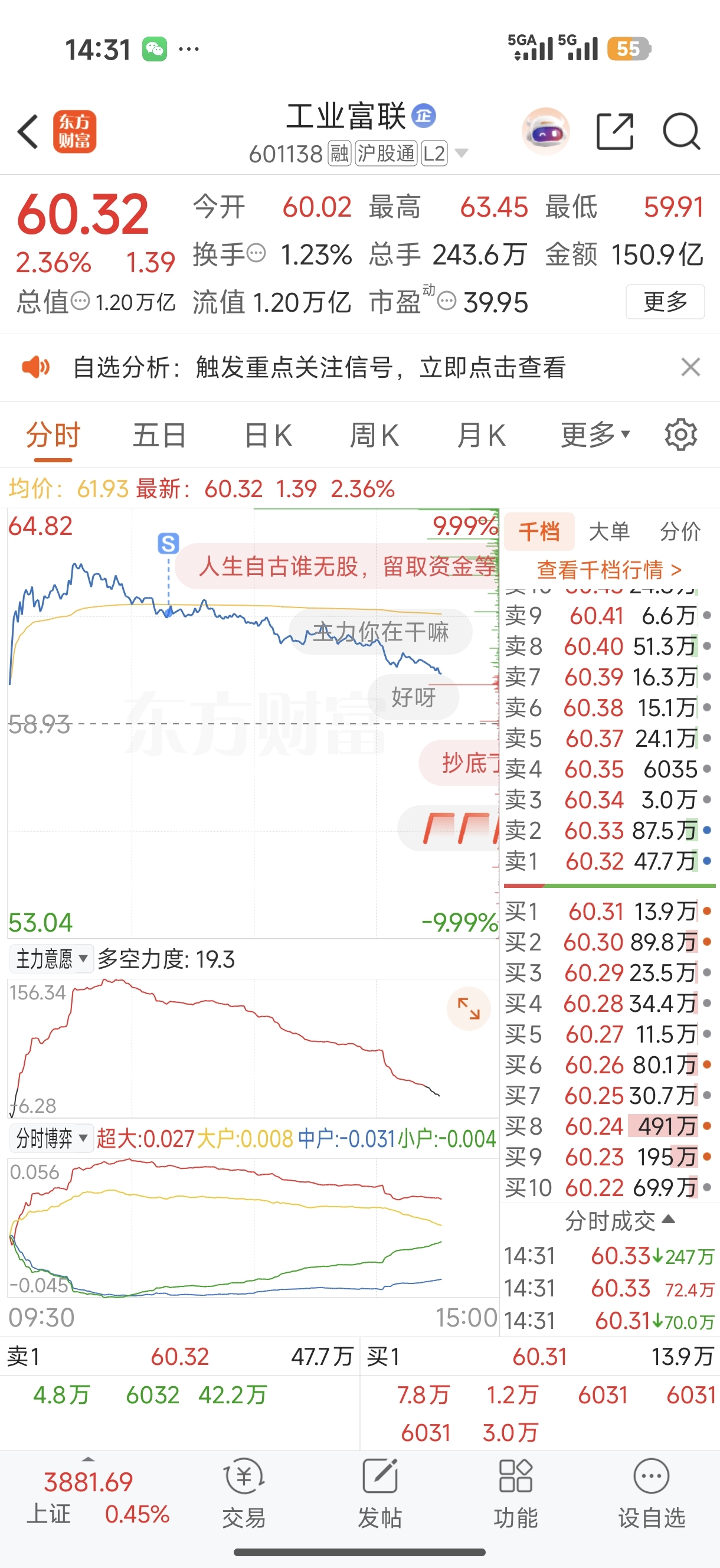 $工业富联(SH601138)$ 早上手一抖卖了,没有拿住筹码,明天低开在买回来吧