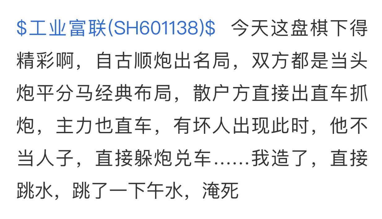 我昨天就讲了妇联的这盘棋,不知道有没有人在看,群众里真的有坏人啊,上午就给你来跳水,都不带演的,直接将死军,论棋力我是甘拜下风的。明天精彩对局,大家切莫错过