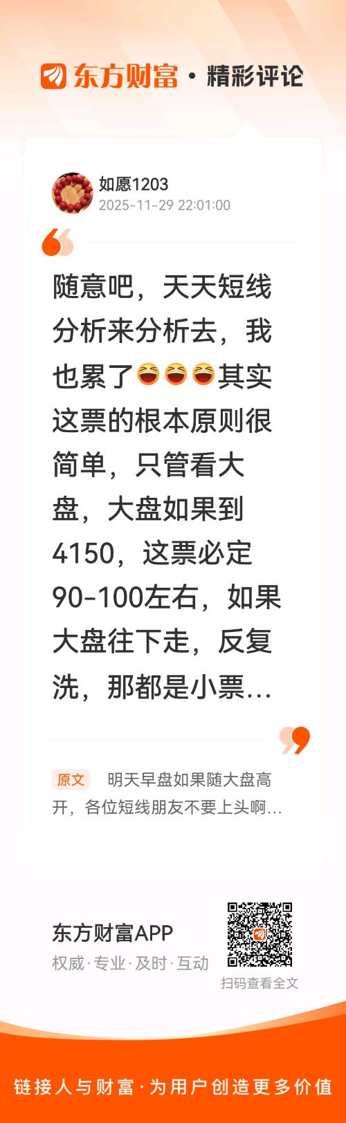 温馨提示: 1.根据《证券法》规定,禁止编造、传播虚假信息或者误导性信息,扰乱证券市场;2.用户在本社区发表的所有资料、言论等仅代表个人观点,与本网站立场无关,不对您构成任何投资建议。用户应基于自己的独立判断,自行决定证券投资并承担相应风险。《东方财富社区管理规定》