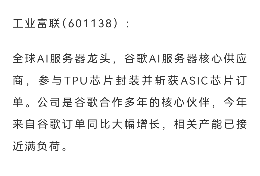 $工业富联(SH601138)$ 谷歌TPU强势破局正在大大利好工业富联。