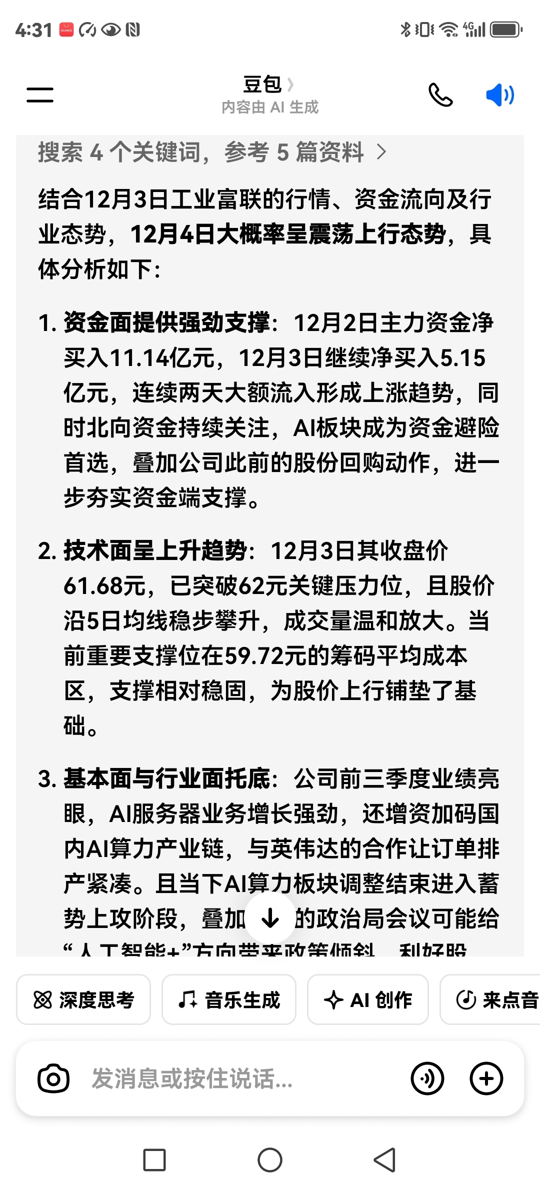 $工业富联(SH601138)$ 豆包对明日富联的走势预测如下:
