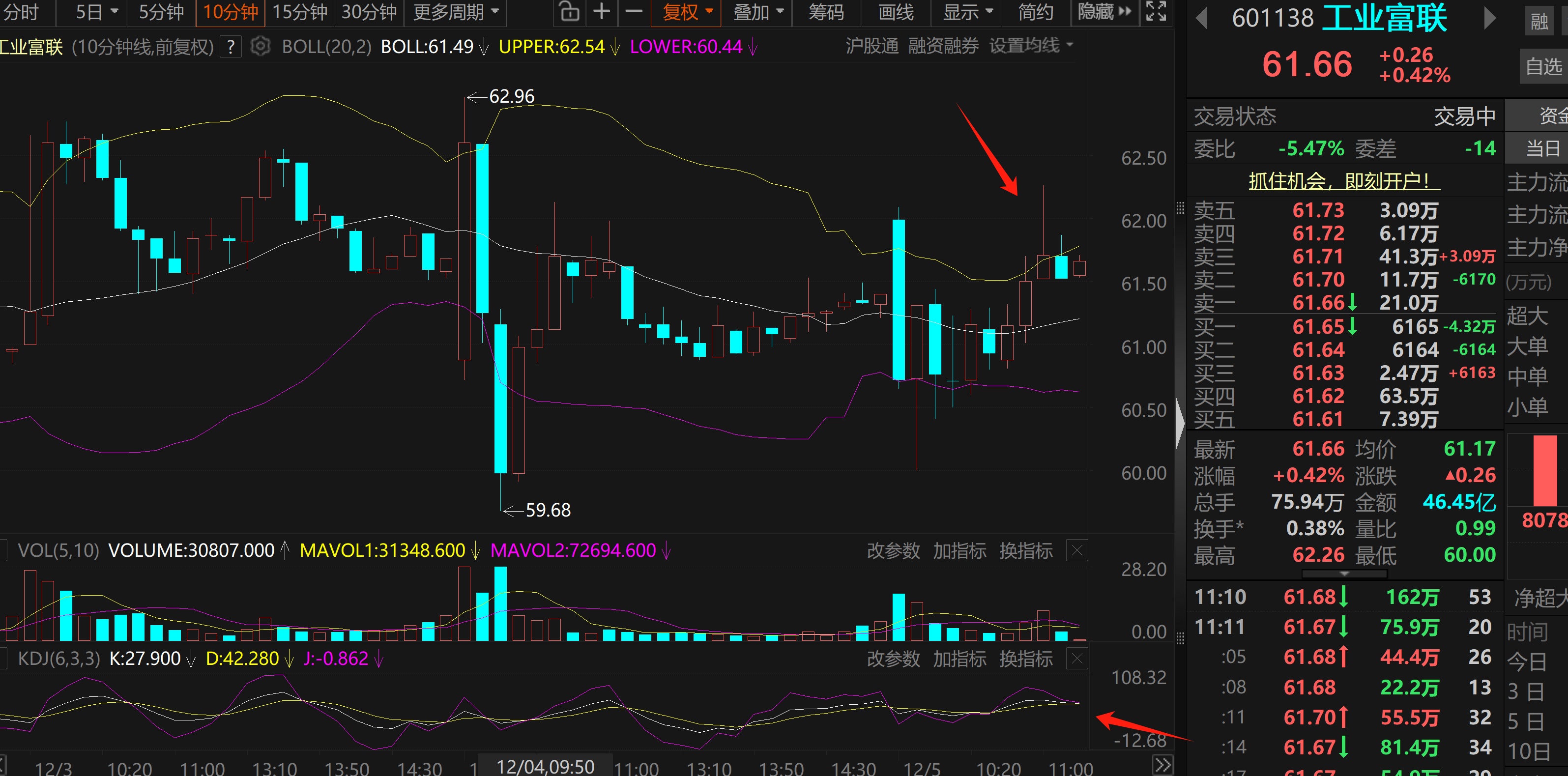 死叉了,叠加上影线buff,加上62块压制好几天了每次冲高回落,61.7今天最后