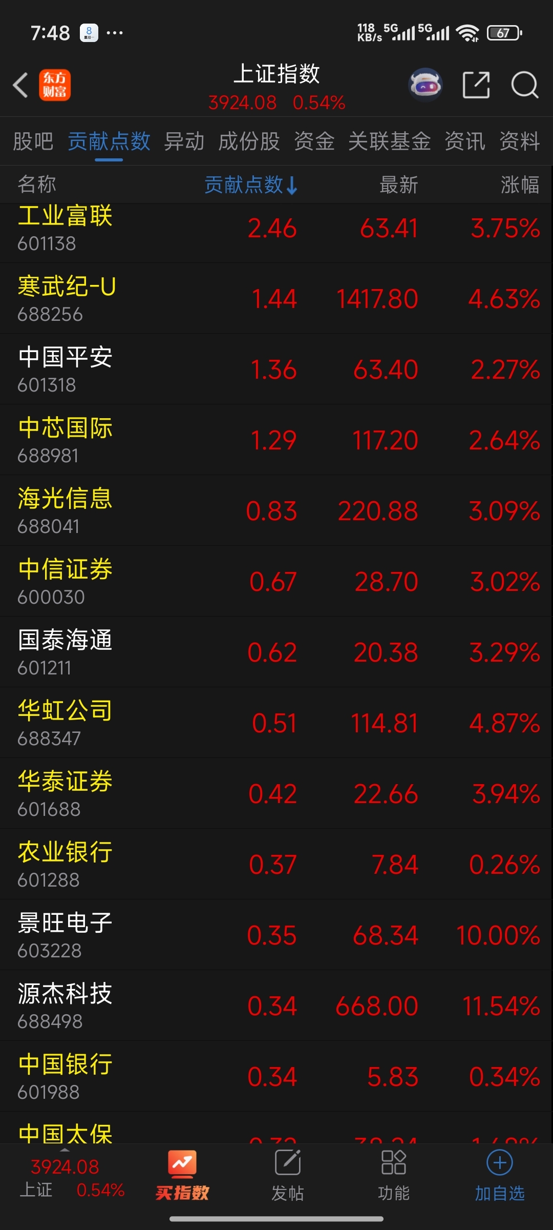 $工业富联(SH601138)$  今日大盘贡献第一名