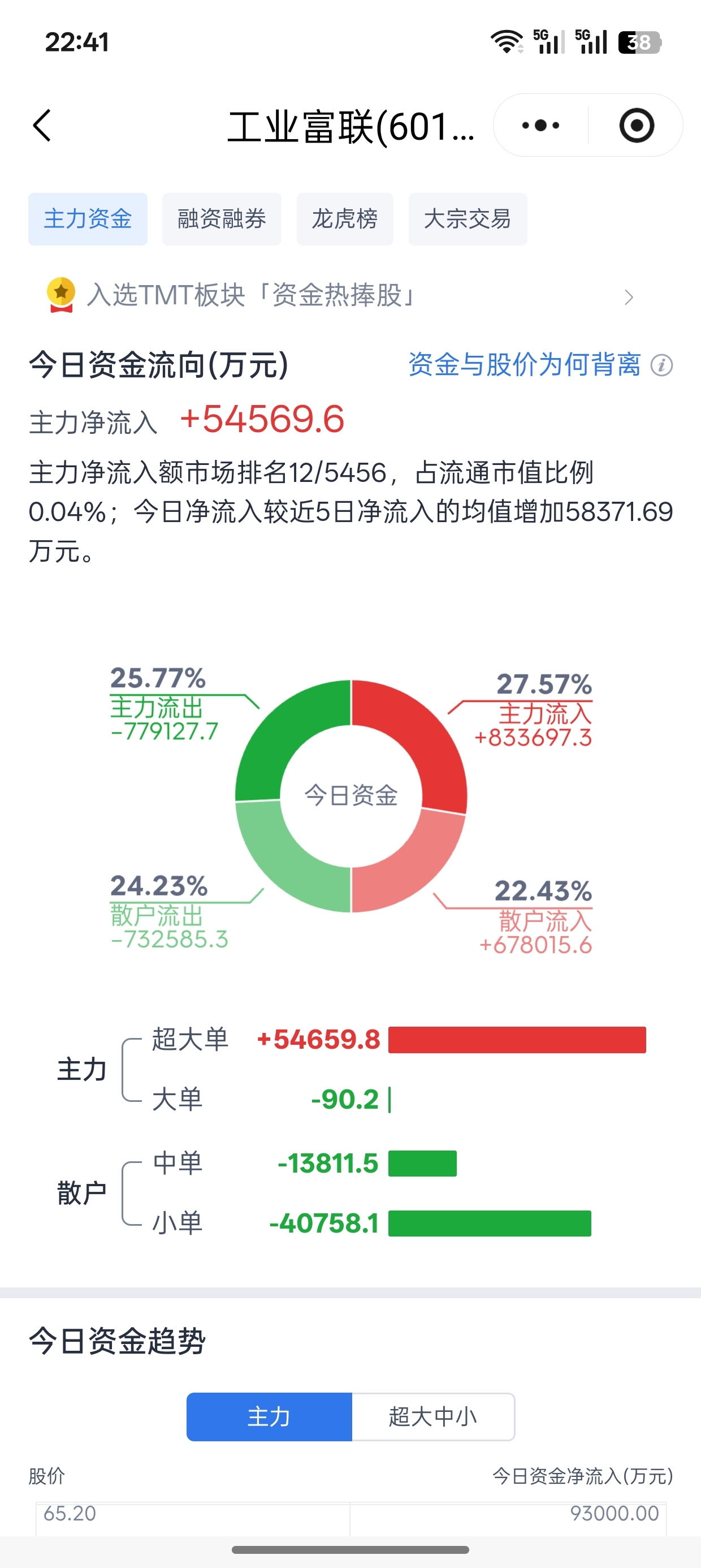 $工业富联(SH601138)$ 上个星期净流入6个亿,一点也不妨碍他高开低走,看这明天又玩完了泄气了