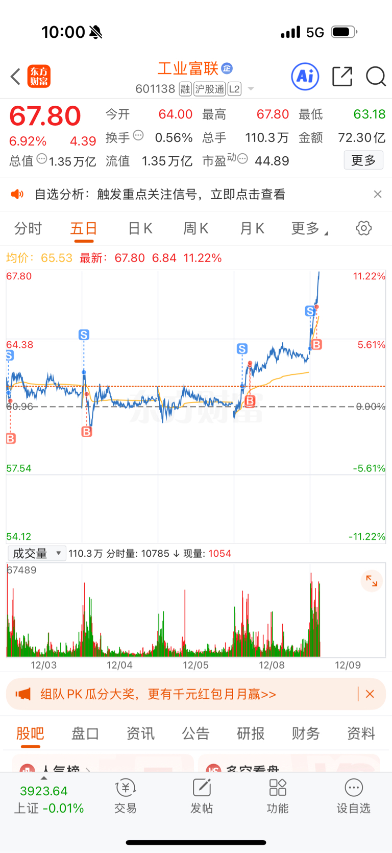 $工业富联(SH601138)$ 全是sb战法,不该做T的,以后再也不做T了