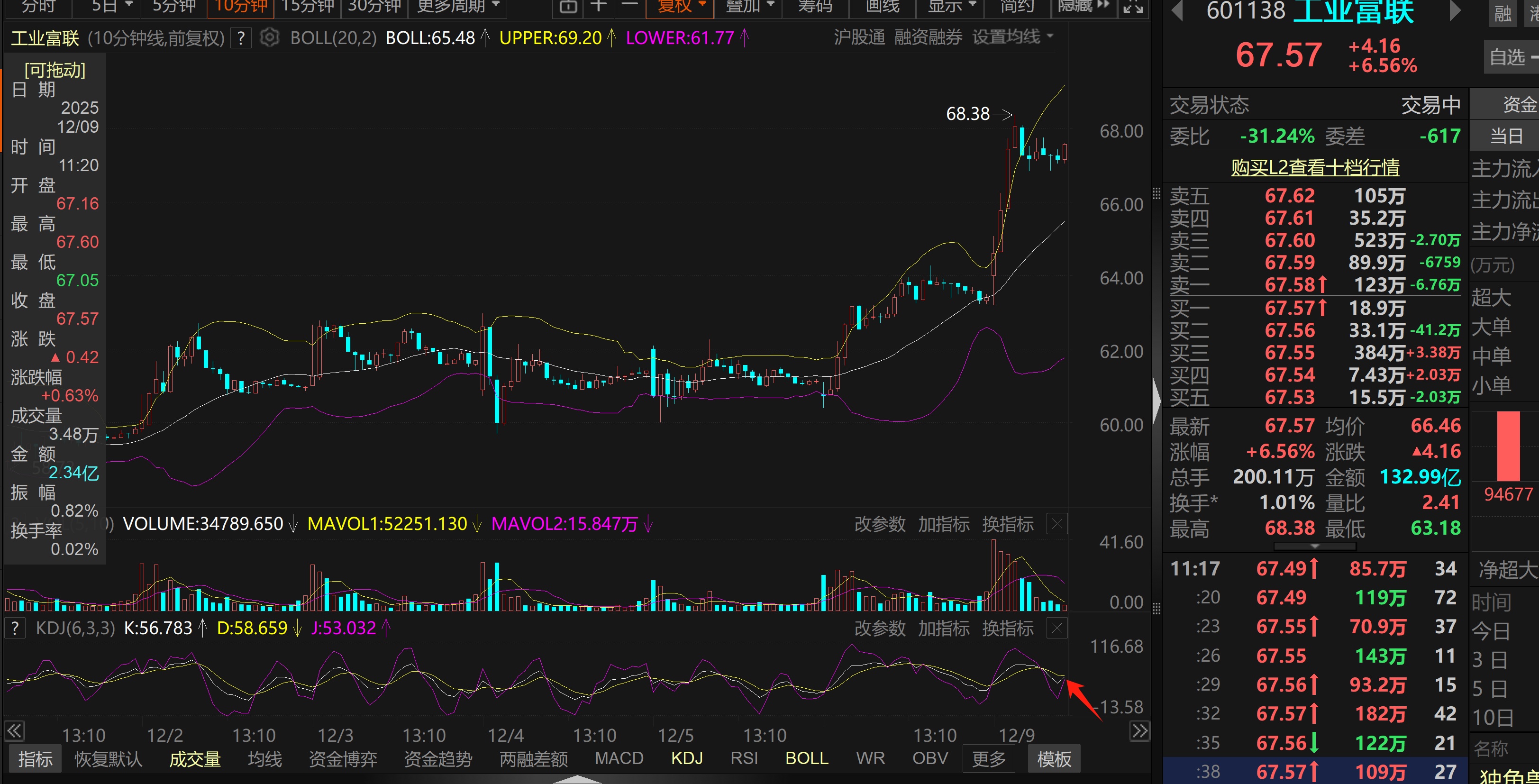 67加仓干了,kdj金叉买入,不到69不卖,单边行情指标容易钝化不t了
