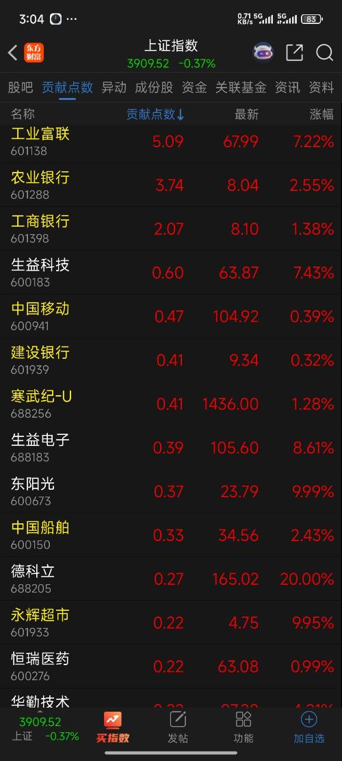 $工业富联(SH601138)$  今日大盘贡献第一名