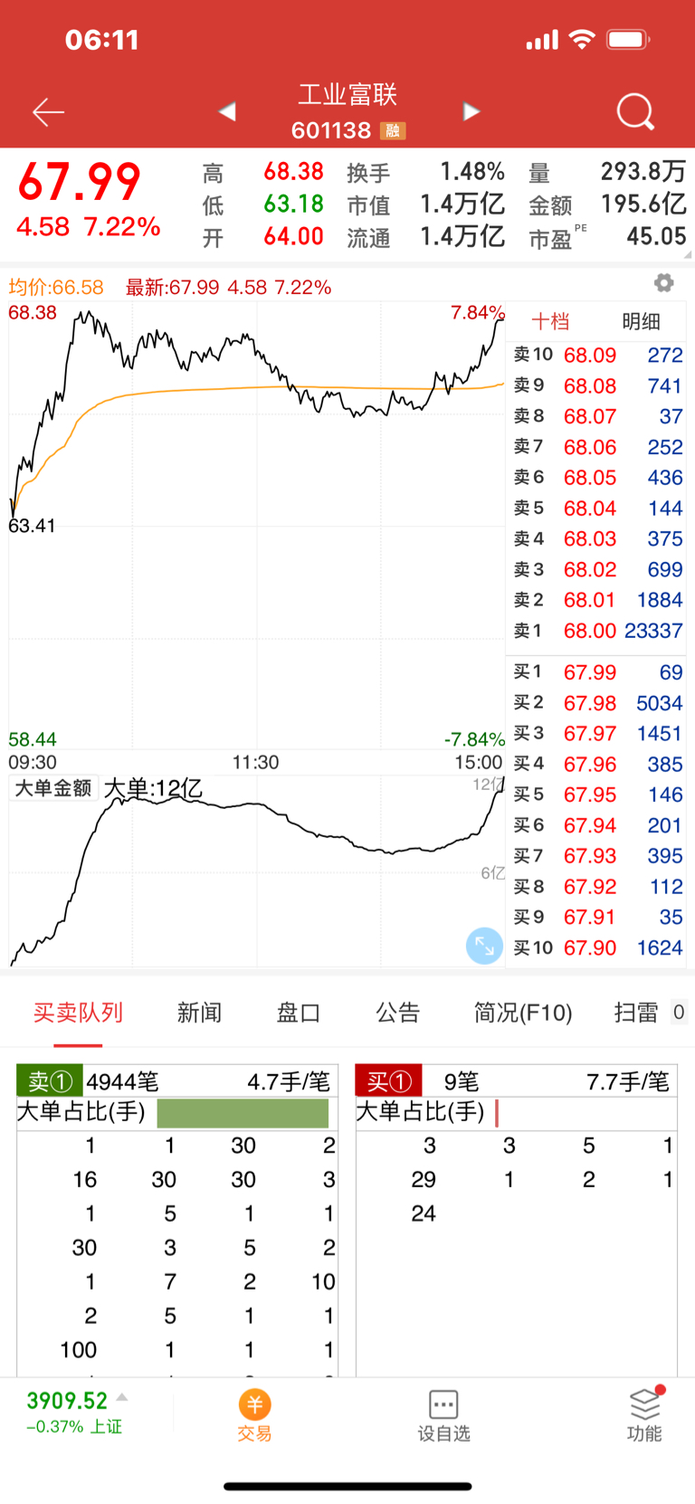 68卖单有23337手,怎么理解,求告之!