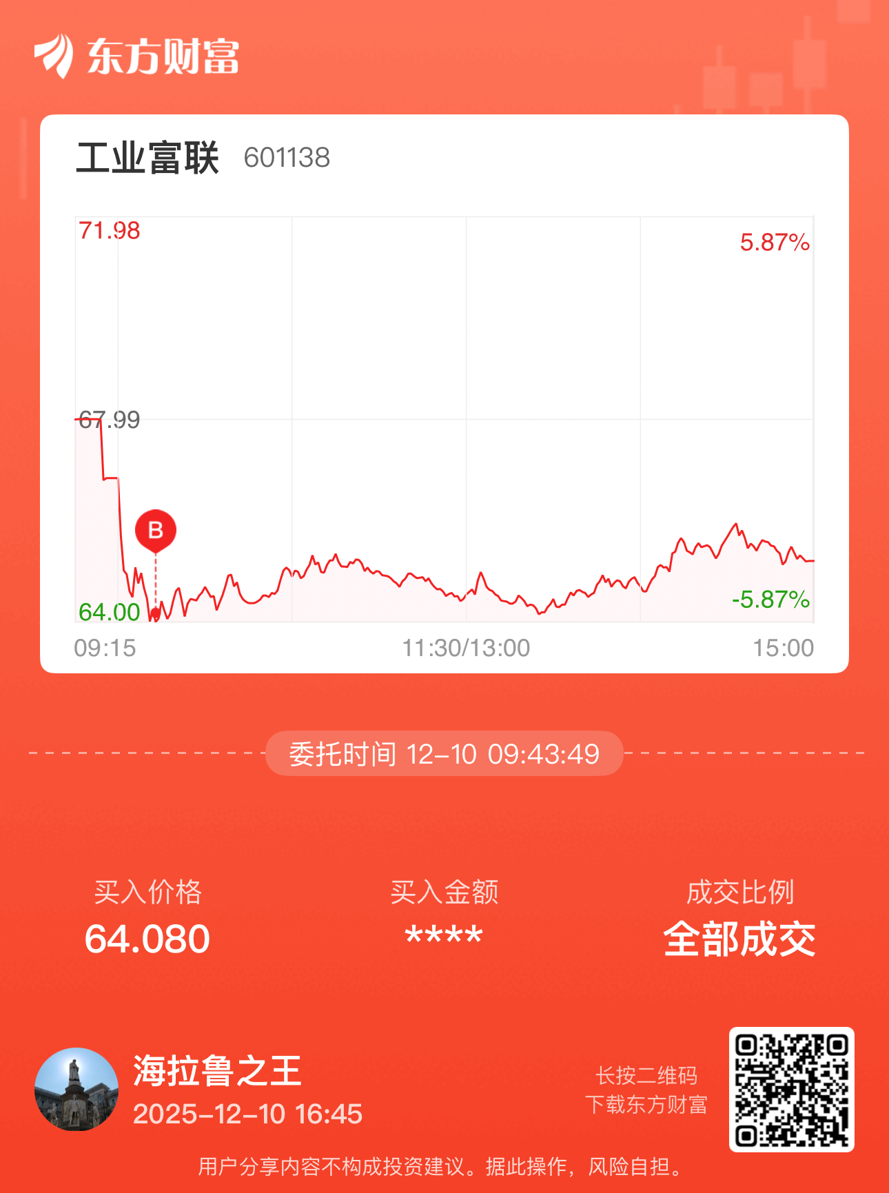 $工业富联(SH601138)$ 明天挂跌停板卖出了。