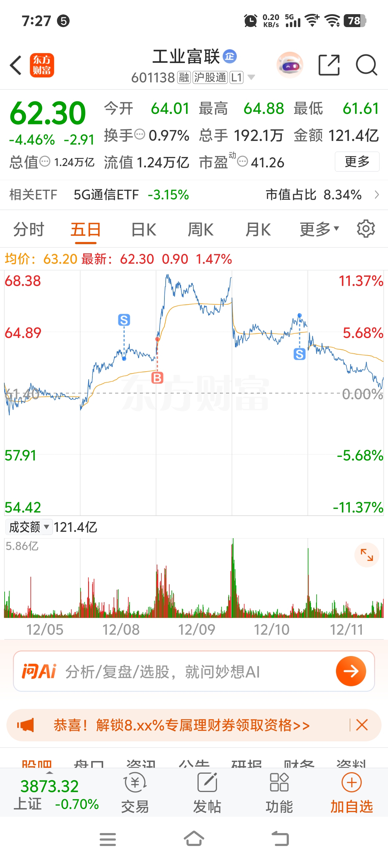 工业富联三天仓位,就赚四个点好遗憾,,,