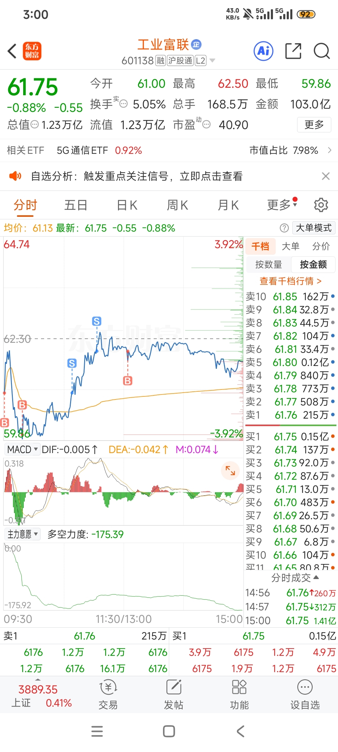 $工业富联(SH601138)$ 下午走势很迷,继续盘
